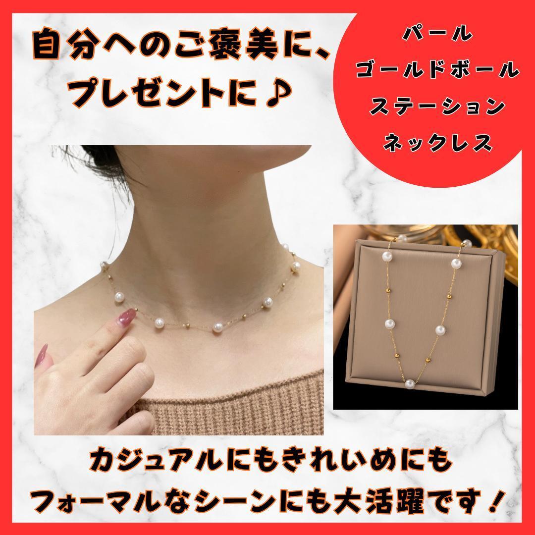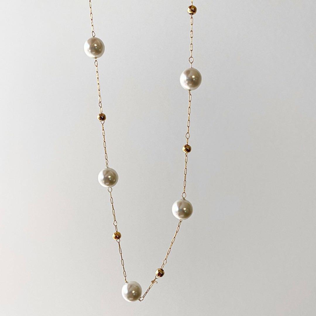 イミテーションパールとゴールドボールのステーションネックレス☆