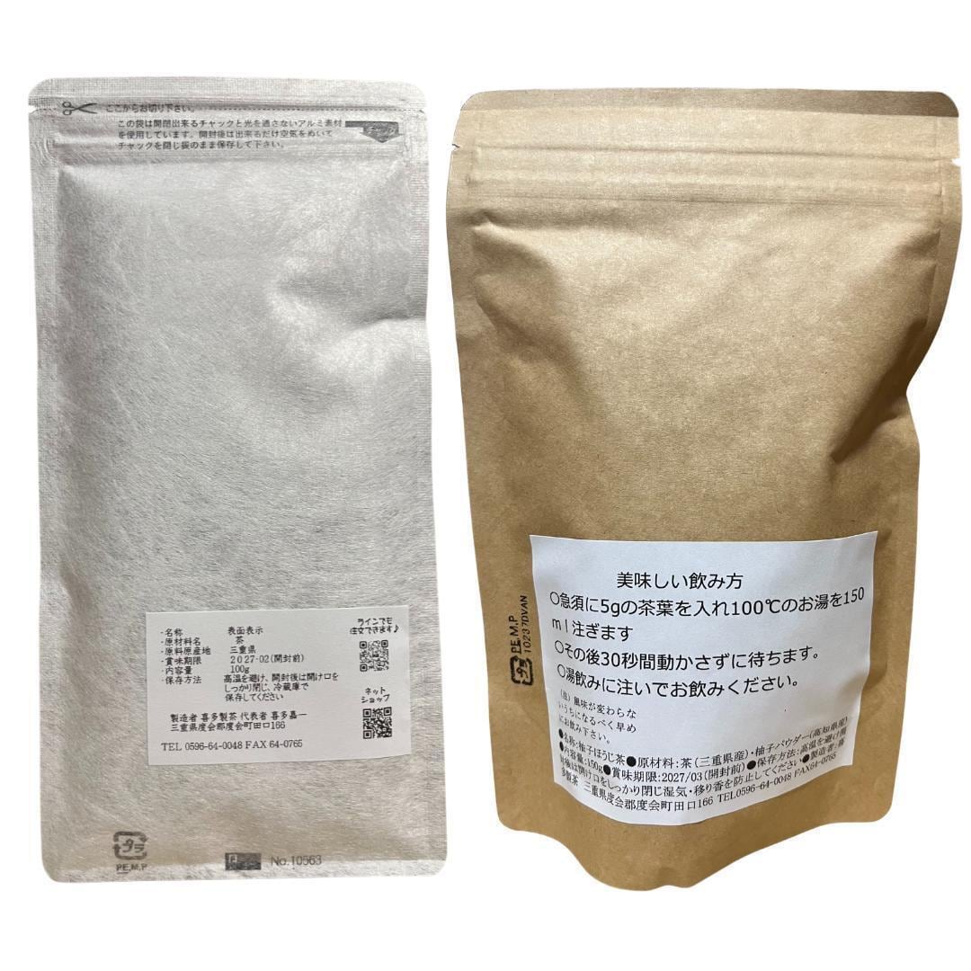・喜多製茶の日本茶詰め合わせ 三重県特産伊勢茶を100%使用した深蒸し煎茶と柚子香るほうじ茶を飲み比べ可能 香り 味わい 使いやすさを重視 茶葉タイプ 内容量 煎茶100g ほうじ茶150g 原材料 茶 柚子パウダー
